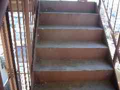 階段の端がサビでふくれています。この状態だともう少し前に塗装しても良いと思われます。